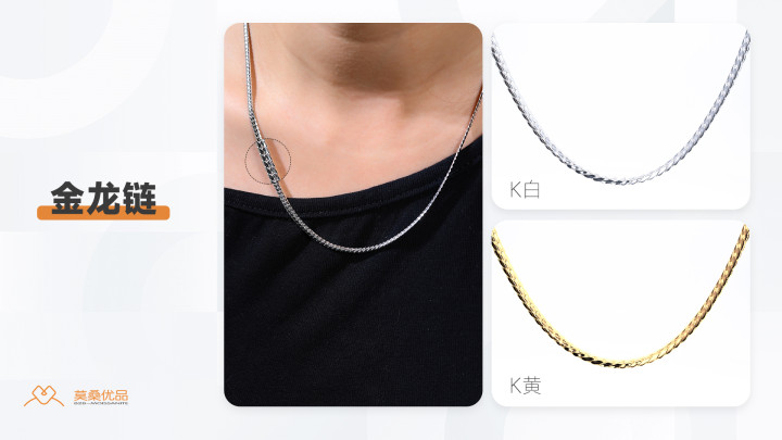 金龙链以龙形元素为设计核心,鳞片刻画细腻,链条蜿蜒灵动,自带华贵的东方韵味,比普通链型更有文化底蕴。它分两种: